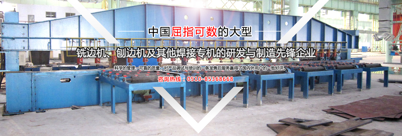 公司是中國金屬銑削切割自動焊接工藝的搖籃,公司是國內(nèi)制造有壓梁、無壓梁銑邊機、刨邊機及其他焊接專機的專業(yè)廠家。取得國家專利局頒發(fā)的最新銑、刨邊機產(chǎn)品專利證書。通過了ISO9001.2000國際質(zhì)量體系認(rèn)證,并獲得了“全國用戶滿意產(chǎn)品”、“江蘇省質(zhì)量信得過AAA級品牌企業(yè)”的榮譽稱號。銷售網(wǎng)絡(luò)遍布全國,部分產(chǎn)品出口東南亞及歐美等國家。公司本著:質(zhì)量為首,用戶至上,信譽為本...     【詳細(xì)】